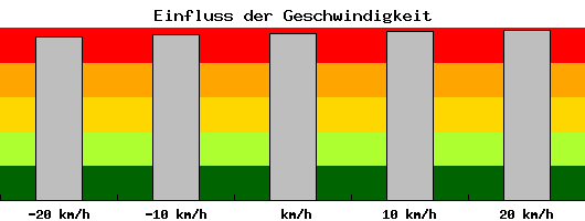 Die Punktzahl kann verwendet werden, um verschiedene Gespanne miteinander zu vergleichen (je höher desto besser). Auf der ebenen Straße beträgt die Punktzahl für den Auto mit dem Caravan 209 Punkte und im Gebirge 217 Punkte.