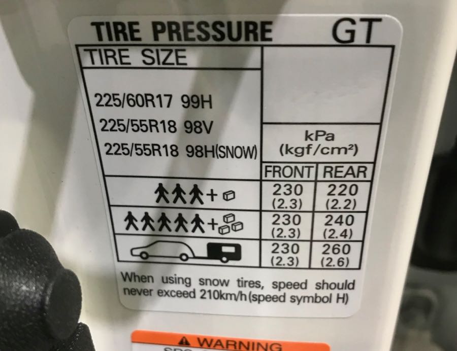 Soms geeft het instructieboek of een sticker met de bandenspanning in de auto uitsluitsel.